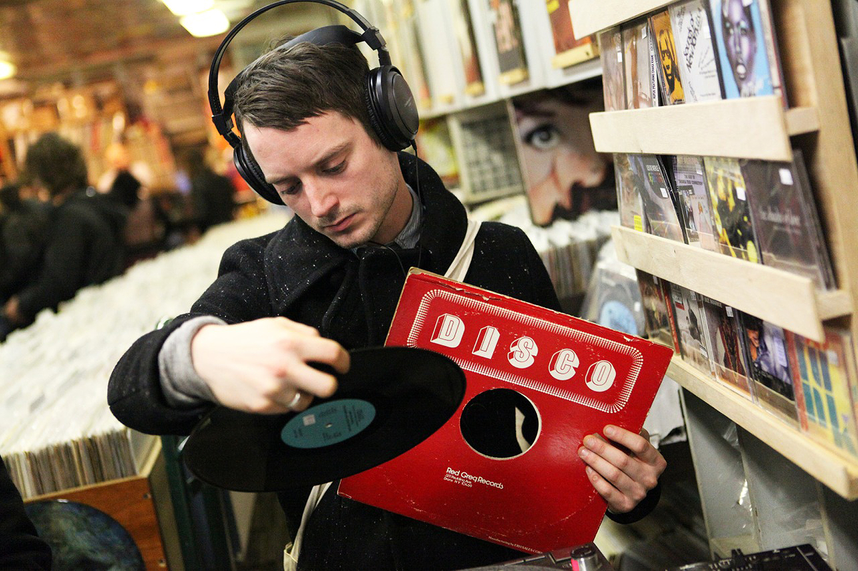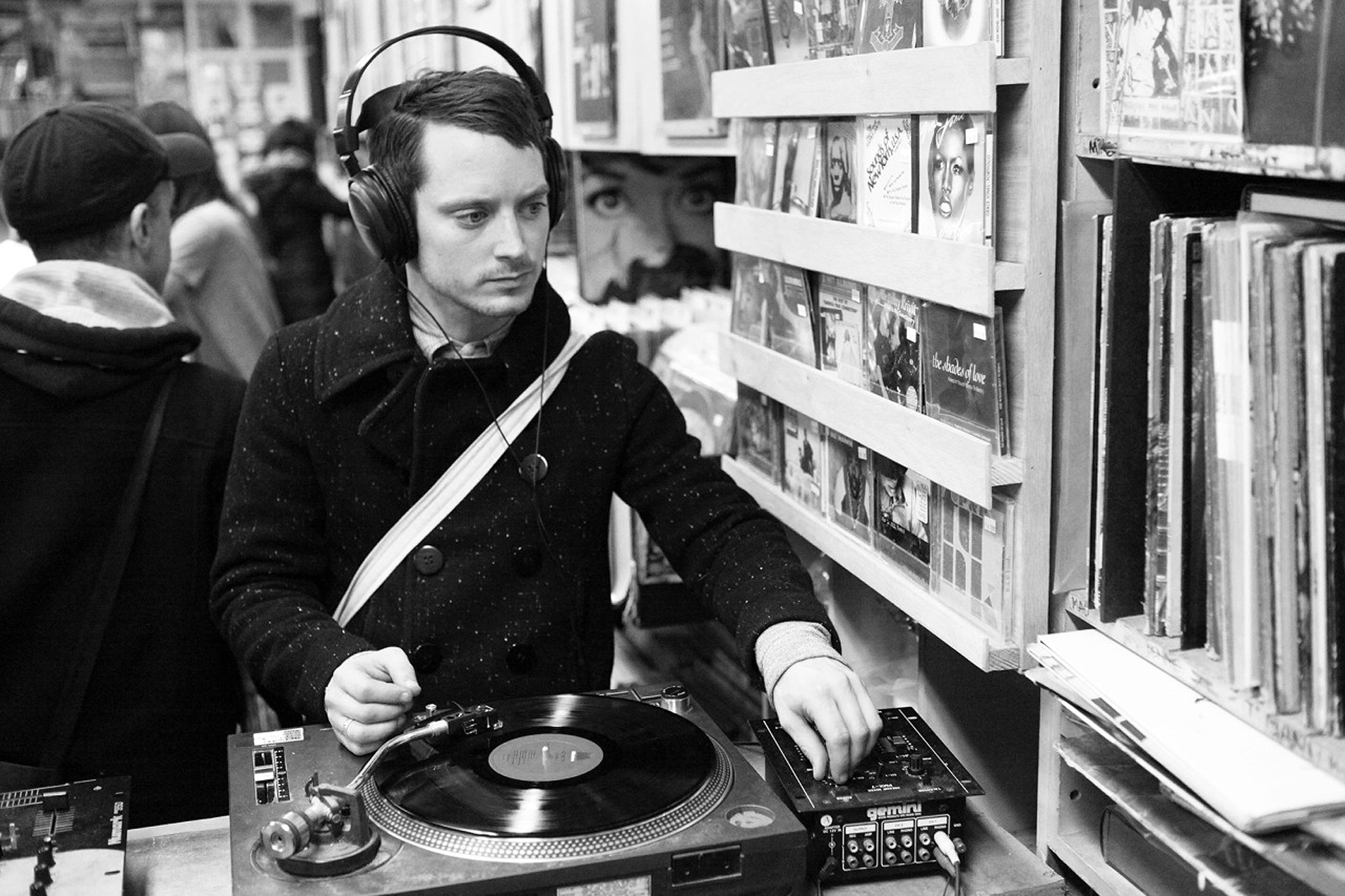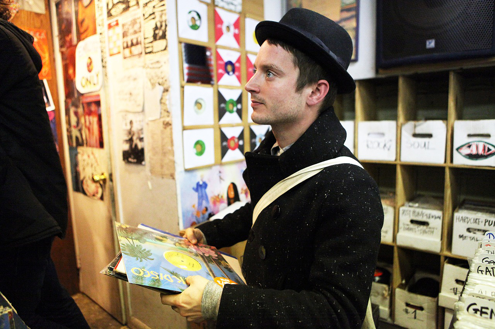 Elijah Wood is pictured inside A1 Records in New York City on Jan. 19, 2015