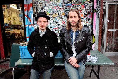 Elijah Wood, left, and Zack Cowie, right, are pictured in front of A1 Records in New York City on Jan. 19, 2015