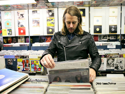 Zack is pictured browsing through vinyl records at A1 Records in New York City on Jan. 19, 2015