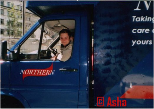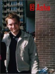 After a few minutes...lots of people started appearing from a pub (quite far in front of me). I looked to see amongst all the actors who played hooligans, but NO sign of Elijah. Suddenly about 3 people appeared in front of me, from behind a van...and one of them was Elijah! I didn't even see him walking upto the van, until he was right before me *big shock-but tried to be cool- and non fan like lol. The van is like 5 meters away from me at this point. And there he was, standing next to it! Elijah gets inside the passenger seat of the van and sits there for a while...with the van window completely open, I can now only see his arm hanging out of the window as I stand there quietly. So that actor guy I spoke to earlier is standing next to Elijah and he looks at me...singalling that I should approach Elijah, either that or take pix of him. I was nervous...as I knew he was right, and that this could be my only opportunity to see him and take a pic. And this is what happened: