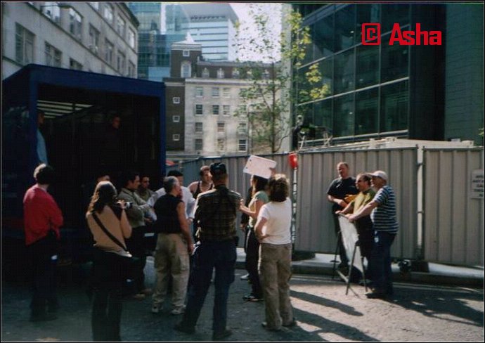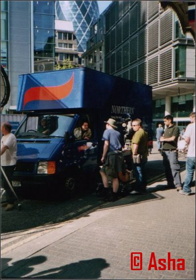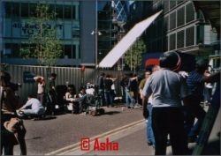 I arrived in London after a 3 hour coach ride from where I live at about 10.30am and went straight to the place where I knew they'd be filming that day. This didn't go as swiftly has I had hoped, as the London underground was experiencing some problems and 2 of the main lines where not running because of it that weekend. This meant that I had to change lines 3 times, instead of taking the one underground that I had planned to. Anyway...I got at Fenchurch Street station about 11.00 and looked in and around the area if there was any sign of filming. After having looked around for about 20 mins, I was getting a bit disappointed at the thought of having travelled all this way and not find him there. after about 30 mins I was seriously thinking that I probably would not find him any time soon. It was a very beautiful day but very hot after walking circles in the area of the station. So I went back into the station and decided to look a bit further into the station...I asked a guy at the information desk if he had seen any film crew around here today. Thankfully, he had and pointed me straight to it!!! I started feeling relieved and slightly nervous at the same time as I follwed his directions- as they would be probably filming and wasn't sure if I would be allowed to even go anywhere near it. I kept on following his directions and...the guy was right. There were over 50 people (cast and crew) there at the end of the station (the main entrance) . As I kinda looked around...an older couple walking in front of me asked one of the crew (which seemed kinda cute- looked a bit like Jonathan Taylor Thomas, but with long hair lol) what was going on. And he said that they were shooting a film called "The Yank". I KNEW I was in the right place there and then....so I asked the guy straight away if Elijah was here. He seemed to be pleased that I knew about this film and gave a smile of approval and told me that Elijah should be out here in about 15 mins. *majorly happy at this point* I looked around me to see what was happening and the crew seemed to be setting up again, after they'd come back from what I assume was a short break. I was feeling alright and was determined to blend in and not to distract anyone. So I hid my camera underneath my coat that I was holding in order not to be noticed as much. As I waited around on the actual set...we (us regular folks) were told by security to move back a little, which we did as filming was about to commence. At this time there were a few people watching and asking the security people questions. So a male actor came upto me and asked me if I was there for Elijah. LOL! I told him that I was and asked him how he knew... he said that the photo camera gave me away- darn lol. Anyhoo...we had a bit of a chat about the film...and he turned out be a nice geezer (more about him later hehe).