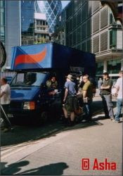 Having been there for about an hour or 2 now, I was told by one of the security people that the cast and crew would be going for lunch soon and that I could come back in an hour when they'd be back again. The cast and crew packed up their things and went into a pub nearby-the same one they came out of before. I'm not sure if the pub was open to everyone-though I did use the toilet once without anyone saying anything...but the cast and crew were not in there at th time. Plus it was quite small and there was alot of people from the film. That and the fact that I don't drink and following Elijah and co on their well deserved break had not even crossed my mind and would not have liked to at all anyway (chicken lol). I decided to ring a friend that works close to the station and have lunch with her. Forgetting that the underground was not working as it normally does, it turned out to be too much hassle and asked her to come and visit me on set after work. Having wasted almost the whole lunch hour arranging to meet with my friend and looking for a place to eat, break time was about to end soon. I managed to grab something to eat after finally finding something some edible food...I couldn't believe the number of cafes and restaurants that were closed during lunch in the area. Very strange. I came back on set after about 1 hour or so to find everyone and everything back in place as I left them before they packed up.