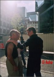 Something really weird happened and I'm not sure exactly what it was about, but as I was standing inside the station...and filming seemed to be on a very short break some guy came running from the set to the inside of the station running up a long escalator as fast as he could. We were all looking at him and wondering what he had done as he stormed from the set (obviously running away from someone). Seconds later...Charlie and one of the other main actors of the film follwed him up the escalator and so did a few of the production team. We were all a bit amazed and wondered what had happened. I guess we'll never know as they came back down again after about a minute or so. So when Charlie and the other actor came down again and went outiside on set... Elijah asked one of them and said something like 'Are you being serious?' and you could tell from his face that he was gob smacked. But I still don't know what happened, just found it a bit weird...like they were chasing the guy. I don't know.