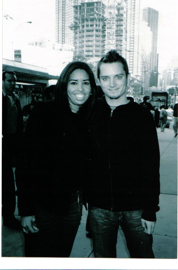 It all happened on October 11th, 2003 in NYC. My best friend, Mary, and I decided to go out to eat at the Olive Garden in Time Square. Mary then wanted to go to Victoria Secret but I wanted to go to Toys R' Us first. We happened to go to the Virgin Record Megastore and then to Toys R' Us. I took some pictures in the Toys R' Us store and even one with the Lord of The Rings action figures. Then we finally began walking to the Victoria Secret store. We were almost there; then suddenly I see Elijah and he was walking between his two friends. I told Mary very calmly "Look. There's Elijah". She didn't believe me at all because I said it so calm and she thought it was all my imagination. I said it again and soon he was about to walk in the Tower Record Store. I then told my friend "I must say something to him. This is once in a life time. I know I have to say something. This doesn't happen everyday." Before he walked in I said "Excuse Me?". He turns around and that's when my mind began to panic. On the outside I was very calm but I was nervous as hell. I then said "I'm sorry. I don't mean to bother you but can I take a picture with you?". He says "Sure! Do you have a camara?". My friend struggles to get the camara and at the same time she apologizes and says that we are fans of Lord of the rings. OK.... this is the part where I felt like a geek. I then tell him that we went to Toys R' Us and we were at the Lord of The Rings section. Man. I know my mind wasn't functioning properly. Why did I have to say that? Anyways, Mary takes a picture of both of us and we said thank you. I didn't asked for anything else because his friends were already inside waiting for him, I didn't want to bother him much and I know he was hanging out with his friends so I didn't want to take much of his time. I'm glad that I met him. He was so kind and I appreciate what he did.