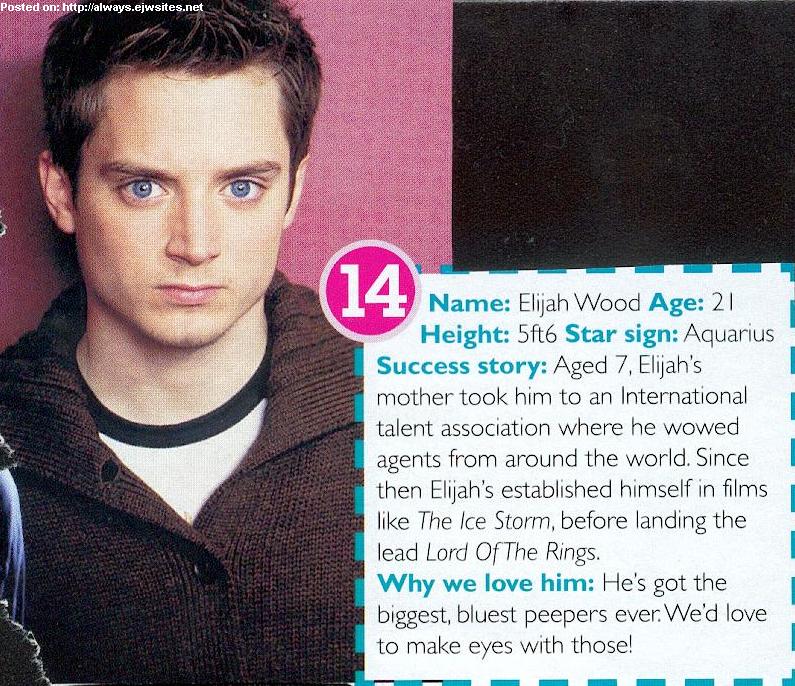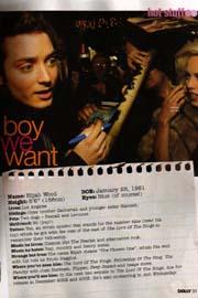 :: I have more information about Elijah in the August 2002 Teen People magazine...