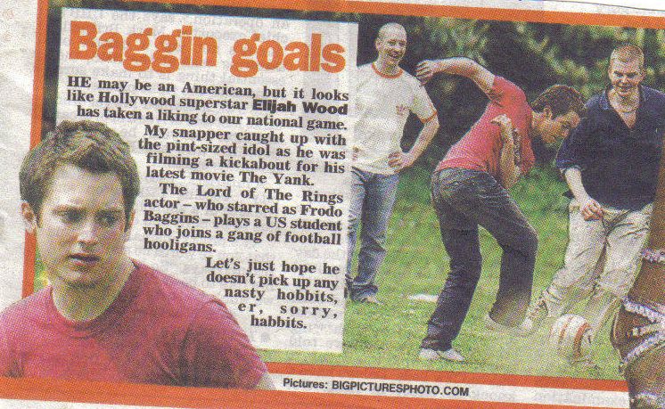 :: Claire sent in this: "Just a little bit of news for you if you want to post it. Nothing exciting, but there was a section in Heat magazine last week about Elijah being overheard talking about how he and his friends drank 73 pints in five and a half hours in a pub in London. Looks like he's settling in over here!!" Thank you very much girl! :D