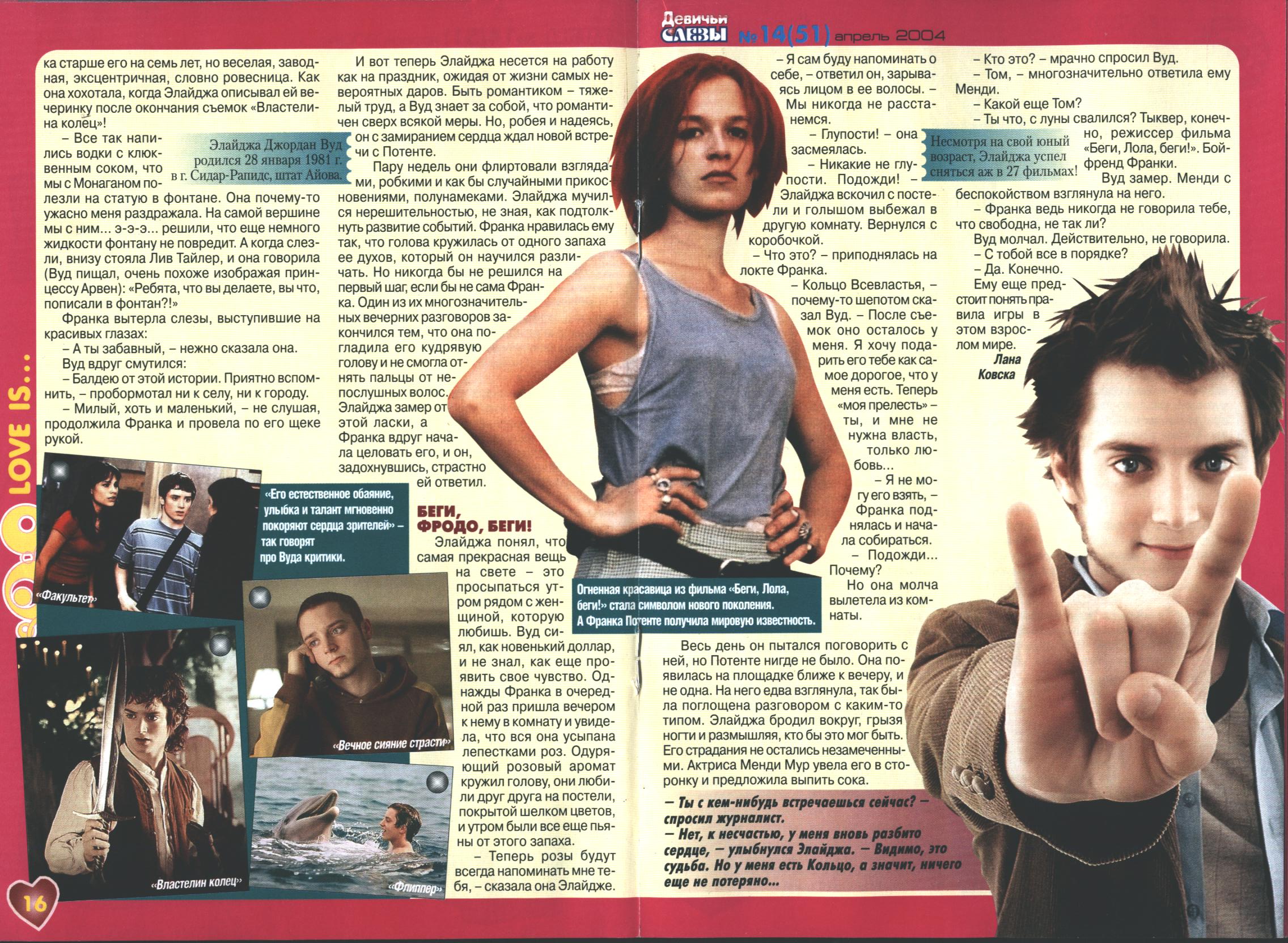 Incidentally, though I generally abhor addressing items like this because of the gnashing of teeth that ensues, that "news" thing going around about Elijah having a girlfriend is very unlikely to be authentic. The original source for it is a re-hash blurb generator called Contactmusic which is notorious for being unreliable and making up/mangling quotes from other interviews. No one can seem to find the original interview source they took it from, either. As always, when news of this nature comes out, be cautious about where it comes from. Unless it's a direct quote from a full, first-person interview (not a blurb) in a well-known media outlet-- preferably a video or audio interview-- take it with a giant salt lick, because you never know where it came from originally, or whether the person who wrote the item even talked to the person in question at all. Teen magazines and celeb rags, especially European ones, are particularly bad about this (remember all the places that were calling Hannah [his sister] Elijah's girlfriend? Yeah, that stuff.) Some even make up interviews entirely. So be careful about what you read. Edit: I was right. It looks like the original source is an "interview" from a Danish teen magazine. Low-level publications like that almost never get actual interviews with celebs. They put stuff together from other sources, and often make up quotes, or embellish stuff to make it sound new. Elijah's actually said before that he doesn't give interviews to teen magazines, so the chances of this one being authentic are pretty low. If it were a quote in, say Premiere, or Rolling Stone, or the LA Times, that's a different story.