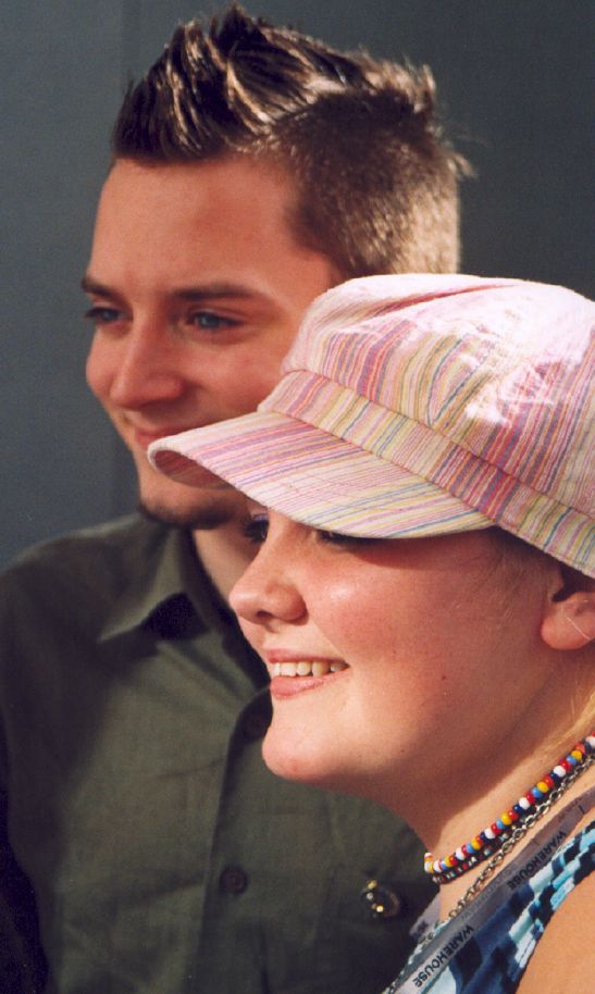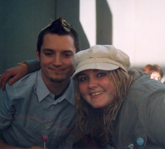 After getting up @ 4.45am, we arrived @ 6am, there were around 10 people in front of us. We waited around then went in and ran to our tickets, we were so near the front, that we were let in straight away. Like a few minutes later dom and elijah suddenly started walking in our direction, by the time I turned around, he was like in front of me, I almost died lol! i went into a complete state of shock, elijah and dom said helloo omg! ahh! Then eventually we got to elijah, and my friend was first, she gave elijah the present, that was a sash thing saying 'girls on tour, but we crossed out girls and put ‘frodo'. Elijah said omg awesome!!! At that time dom looked up and then I like moved up and got out the one we brought 4 dom and said ‘we’ve got one for you too’. Elijah was like ‘yesss sweet’" Then some1 behind us shouted you’ve got to have a picture of that done. So they both stood up and we took pictures with our presents on ahh couldn’t believe it! It was then me, i went up nervously and said hello, and we both said 'How are you?' at the same time. I was like 'yeah Im great now thanks' lol (wot am i saying) he asked for my name and I said Nikki and I really can't really remember a lot, but I know I said 'can i have a present' (wooot the hell was i thinking!!) 'I mean hug I said' he was like ‘yeah sure!!’ i almost died and i wouldn’t let go! I was like can I photo please and we turned round for the photo! ahh it was heaven, then I don’t what happened! haha! Its like a blur! I was in a dream the whole time! So that’s all I can remember there! But the next day I was slightly better!